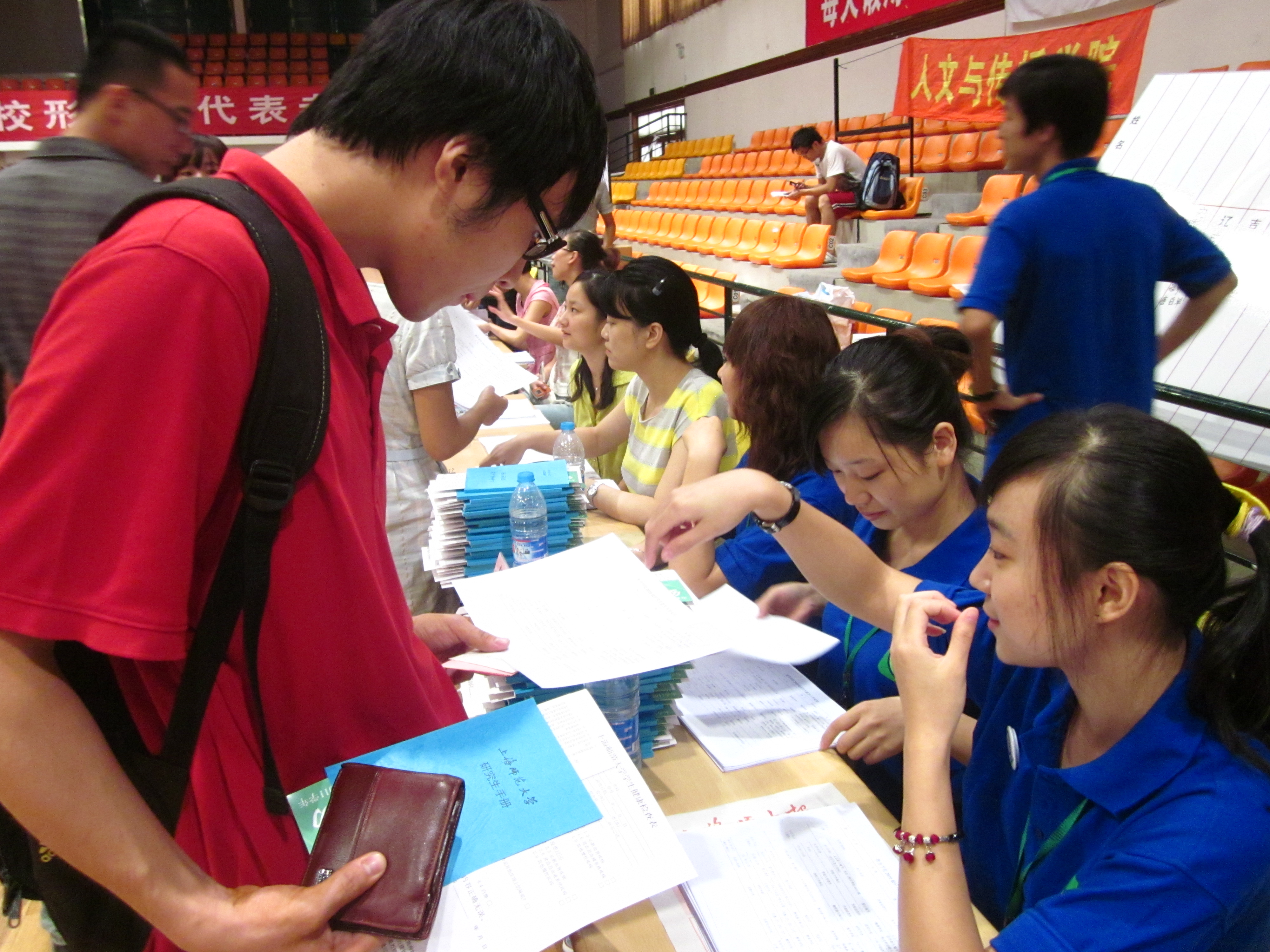 915,教育学院2010级研究生从容踏入师大园,开始了他们人生新的旅程。这一天西部球类馆热闹非凡,整个场馆挤满了前来报到的新生。由于旅途的舟车劳顿他们略显疲劳,但即便如此,仍难以掩盖他们对研究生生活的憧憬和向往。学院安排了研究生会在球类馆迎接新生,教育学院副书记谢青老师亲临现场看望新生报到情况,当天我院研究生新生顺利完成了各项报到手续。