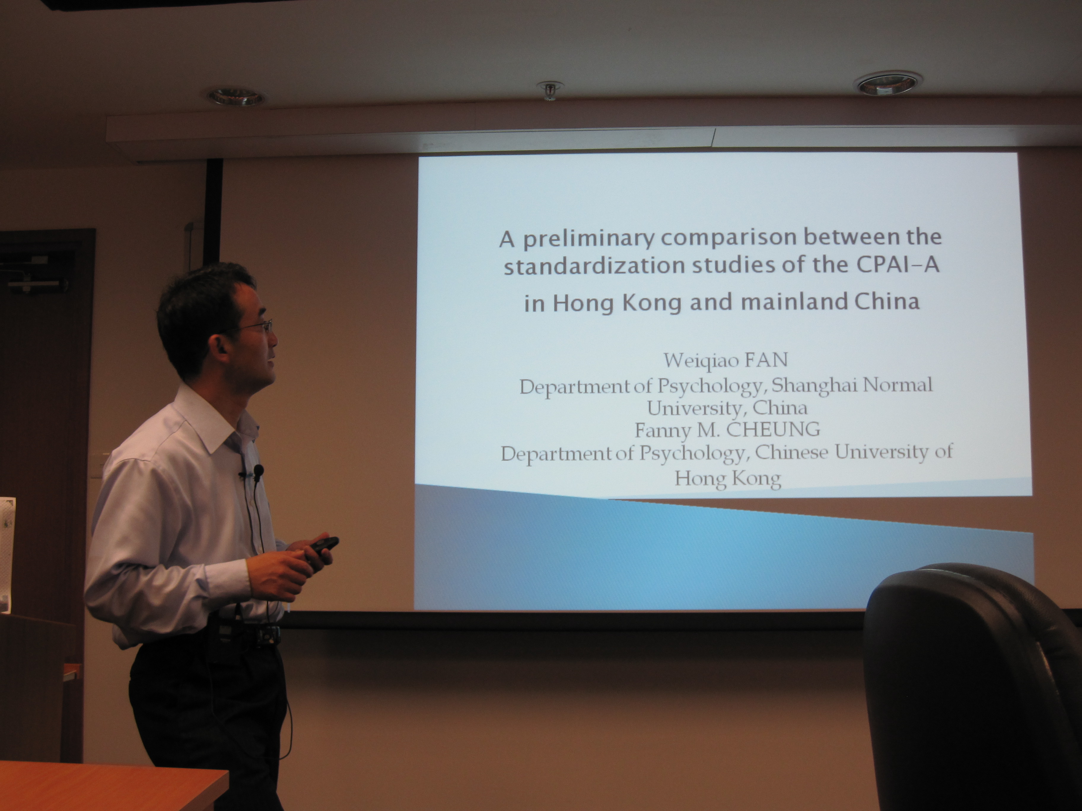 日前,我院心理学系范为桥博士参加了在香港举办的第7届国际测量学大会(The 7th Conference of the International Test Commission,18-21 July,2010),并在大会作论文交流。范为桥博士主持了专题论坛(Symposium)“A Combined Emic-etic Approach to Personality Assessment: CPAI-A's Standardization and Application among Chinese Adolescents”。他还以第一作者身份口头报告了两篇论文,分别涉及青少年人格和大学生职业发展:(1) A preliminary comparison between the standardization studies of the CPAI-A in Hong Kong and mainland China; (2) Parental influence, personality traits, and readiness for career decision-making among Hong Kong college students。