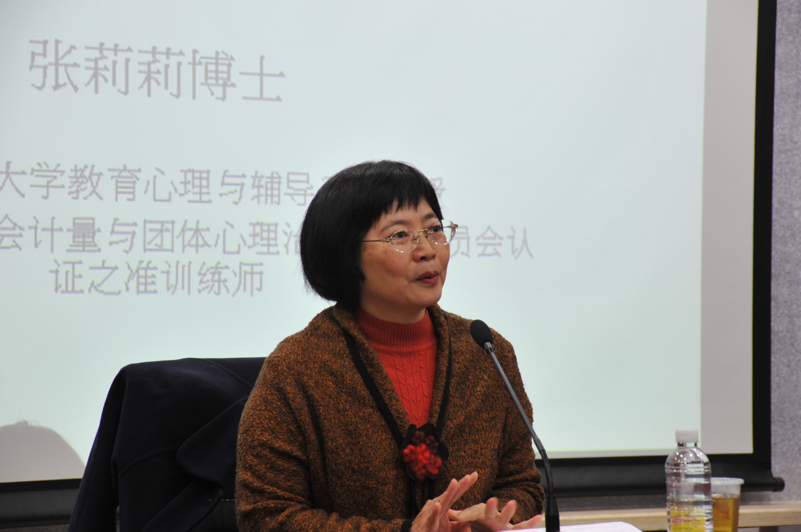1123下午,台湾屏东教育大学教育心理与辅导系副教授,美国心理剧、社会计量与团体心理治疗考试委员会认证之准训练师张莉莉博士为教育学院师生进行了一场别开生面的题为“心理咨询师的自我觉察关系向度”的讲座。