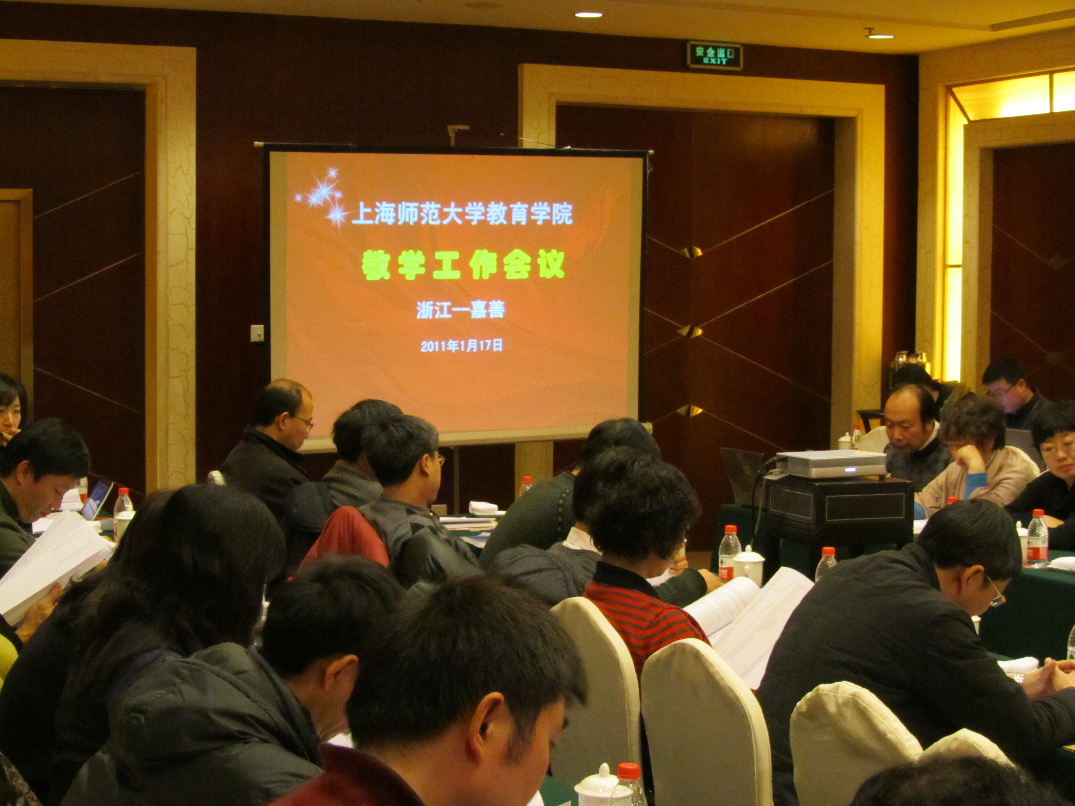 教育学院教学工作会议于2011年1月17至18日在浙江嘉善召开。学院教师对此次教学工作会议的召开高度重视并积极响应,近50位学院骨干教师、全日制本科和夜大学教务员参加了此次会议,其中有9位教授,与会教师的规模和层次空前。 副校长丛玉豪、副校长高建华、人事处处长刘晓敏、继续教育学院院长于志华、教务处副处长王旭川等领导出席此次会议,学院出席会议的领导有书记周银娥、常务副院长惠中、副院长高湘萍、徐雄伟。会议由徐雄伟副院长主持。