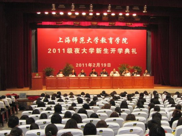 2011219教育学院夜大学2011级新生开学典礼暨入学教育仪式在东部礼堂隆重举行。继续教育学院院长于志华、教育学院常务副院长惠中、副院长徐雄伟、夜大学各专业负责人以及教育学院夜大学全体2011级新生665人参加了此次新生开学典礼。