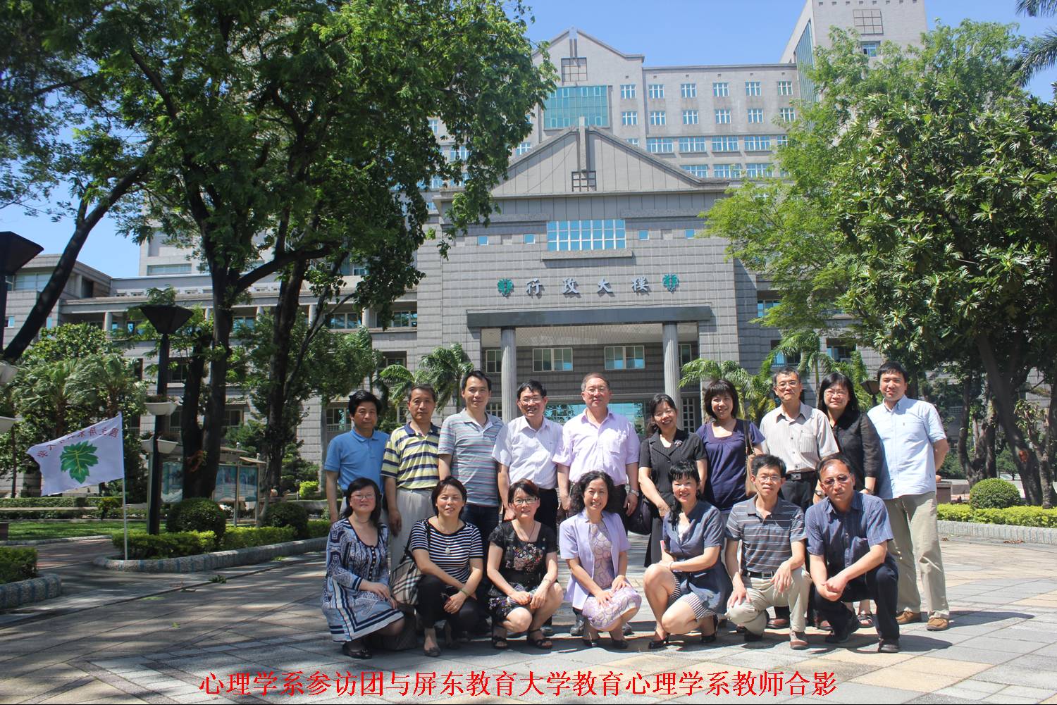201166日至12日,以樊琪教授为领队的心理学系12人赴台参访团在台湾进行了交流访问活动。期间,参访团成员先后与台湾师范大学教育心理学系、高雄市学生心理咨商(咨询)中心、正修科技大学、屏东教育大学教育心理学系的教学与研究人员进行了交流,对台湾同行的研究方向、研究特点、研究方法与仪器设备配置情况进行了深入了解。参访团成员表示,通过对台湾同行教学科研工作的深入了解,获得了很大启发,其中印象最深的是将心理学研究与提高学生心理健康水平密切结合的努力和方法的探索。