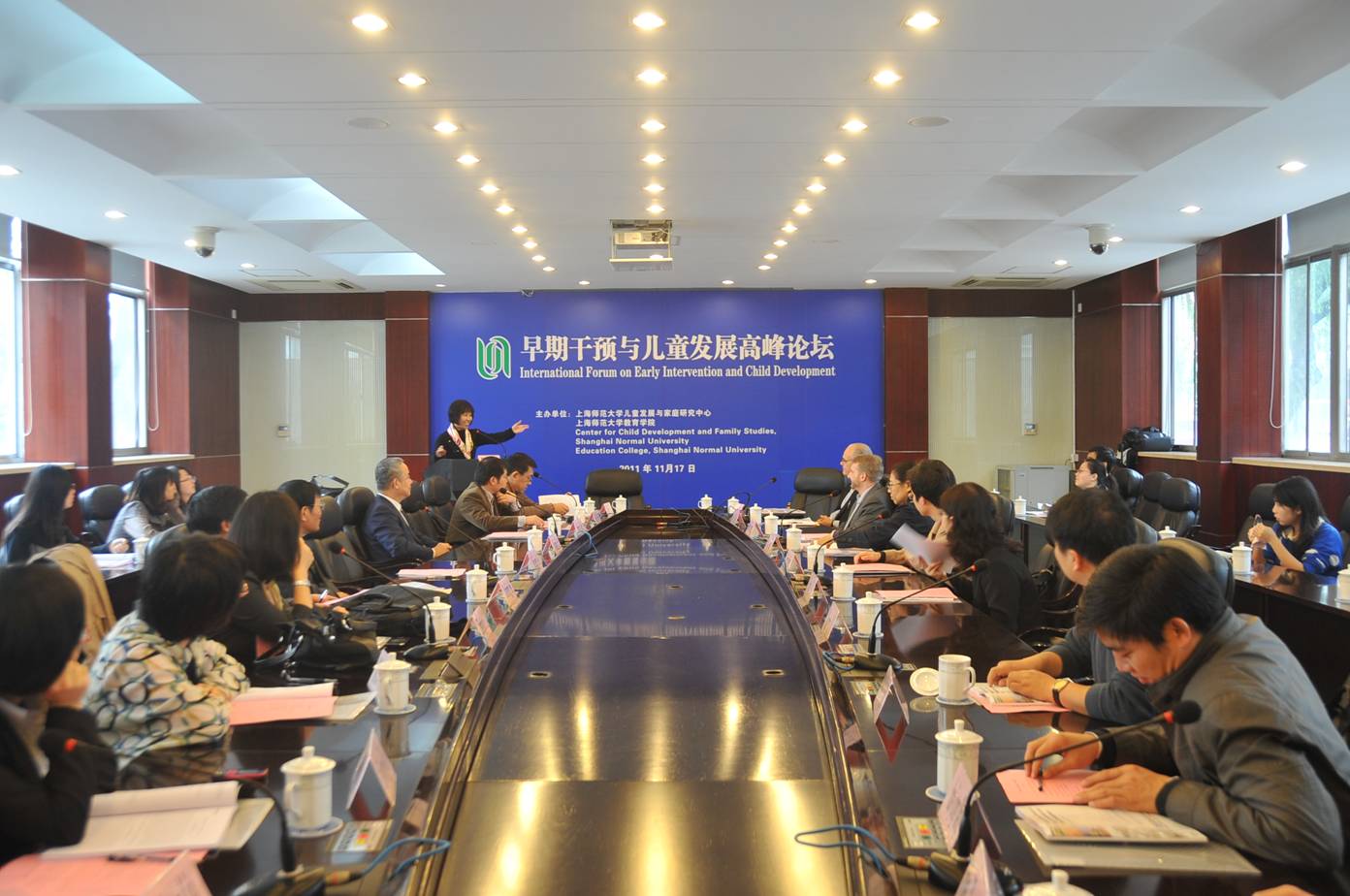 1117号,“早期干预与儿童发展”高峰论坛在我校举行。论坛由上海师范大学教育学院心理学系、上海师范大学儿童发展与家庭研究中心共同举办,国内外学者及研究生共60余人出席了研讨会。