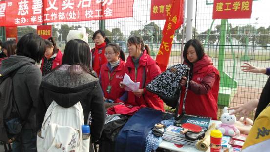 1214,在我校学工部和工会的号召下,我院于徐汇校区西部大道开展了一次爱心义卖活动。
