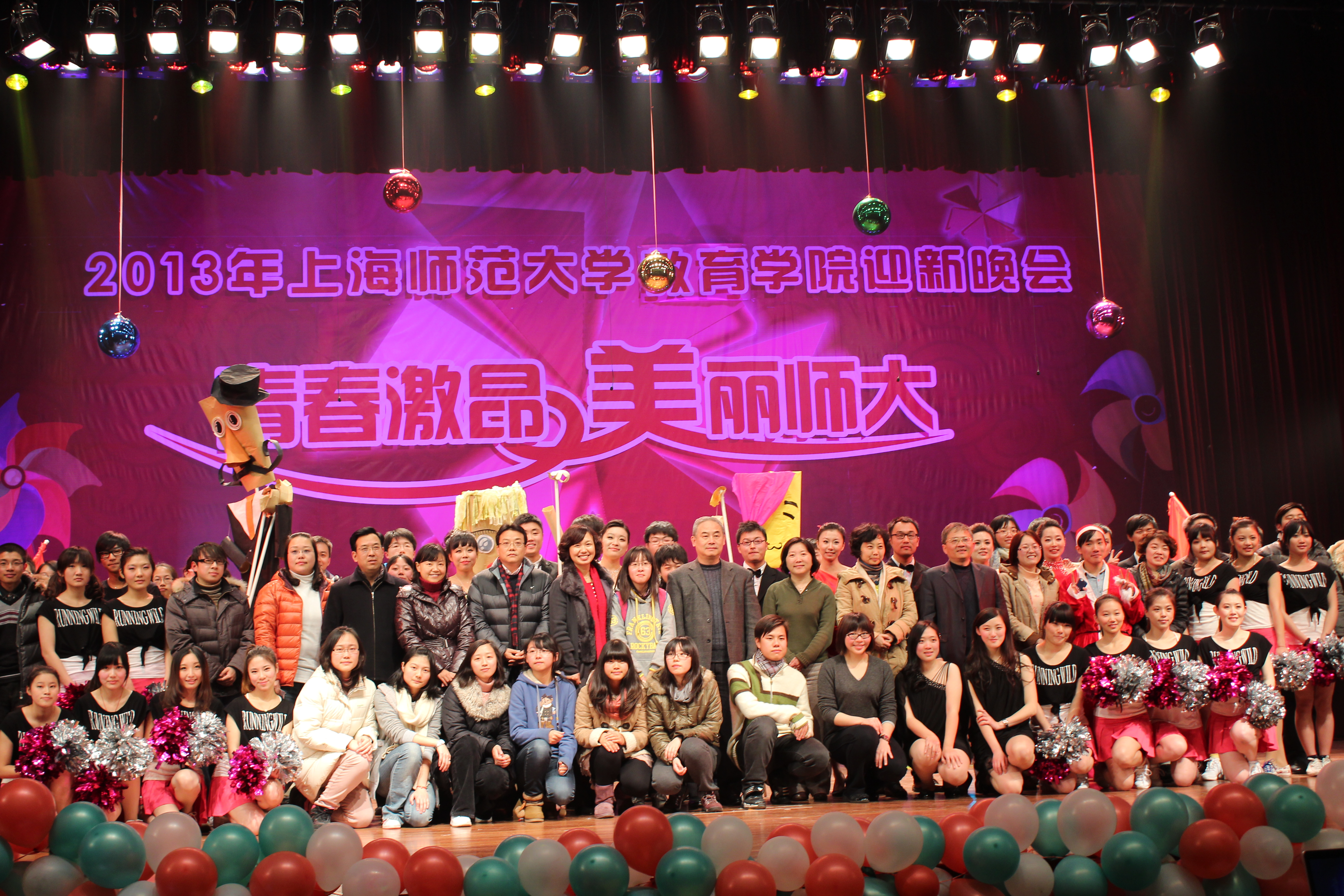 20121225日,教育学院2013“青春教响曲”迎新晚会在上师大剧院成功举办。莅临本次晚会的领导和嘉宾有上海师范大学学工部部长张文潮老师,教育学院党委书记周银娥老师,教育学院院长陈永明老师,教育学院副院长高湘萍老师,教育学院党委副书记段鸿老师,教育学院党委副书记、副院长谢青老师以及各专业负责老师。此外,参加晚会的还有各兄弟学院的团委负责老师和教育学院各年级的辅导员老师。