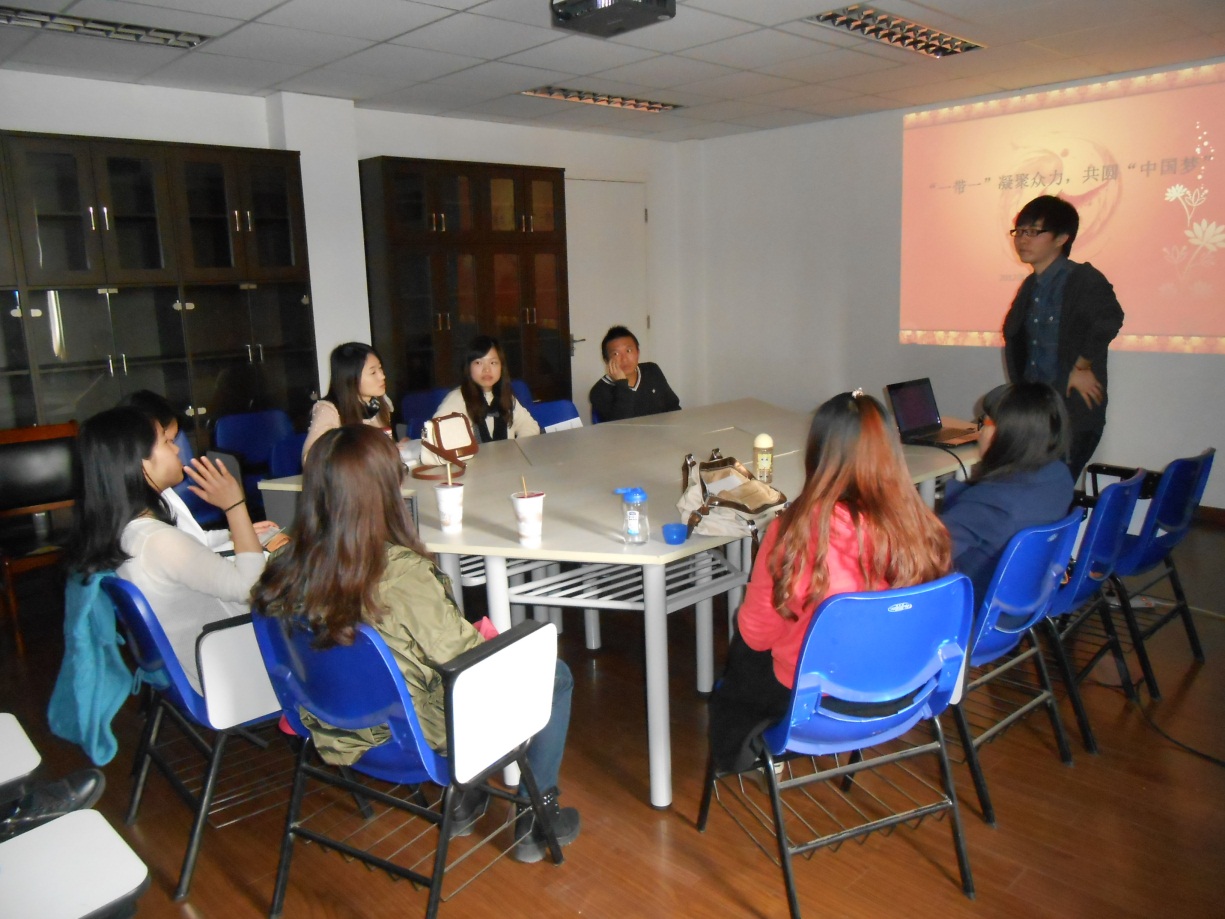 2013年4月12日下午,“一带一”凝聚众力,共圆“中国梦”---教育学院2012级管理班党支部活动在4教309室顺利进行。班级党员、入党积极分子以及群众都积极参与。