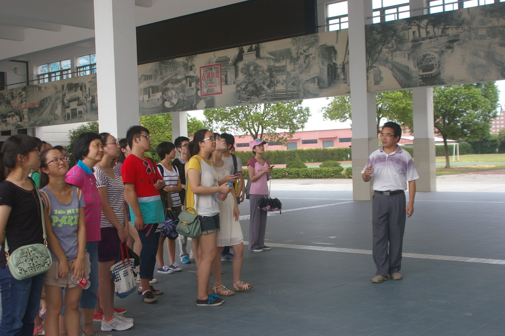 暑假尚未结束,首届(11级)世承班全体同学已经开始了新学年新一轮的学习实践活动。2013年8月19日上午,首届世承班同学在校教务处高湘萍副处长和班导师杨振老师的带领下,驱车前往江苏苏州甪直镇,参观考察我国语文教材奠基人叶圣陶先生当年工作过的“吴县甪直县立第五高等小学”(现名“苏州叶圣陶实验小学”)。