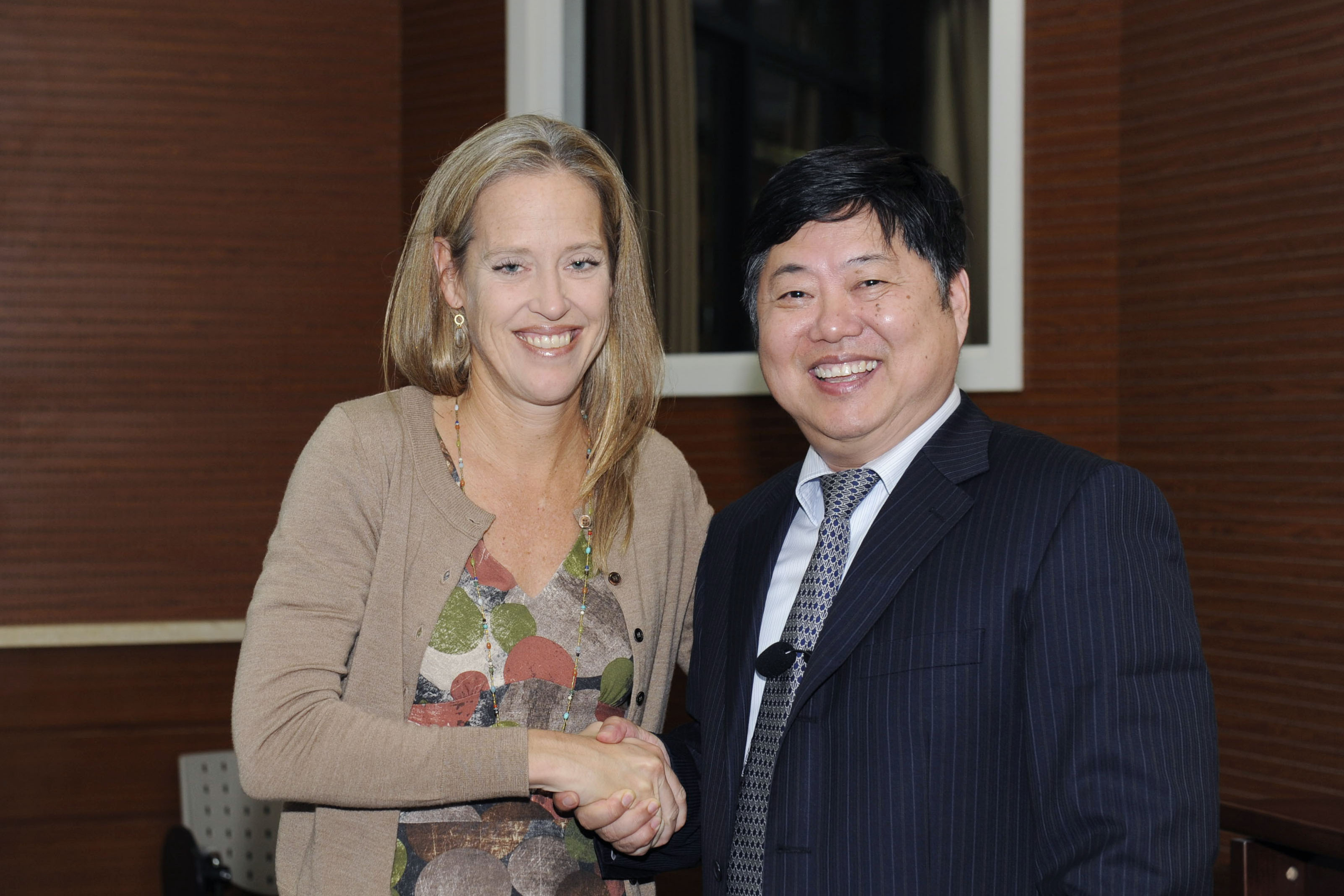 张校长与Teach For All 首席执行官温迪﹒库珀(Wendy Koop)亲切握手