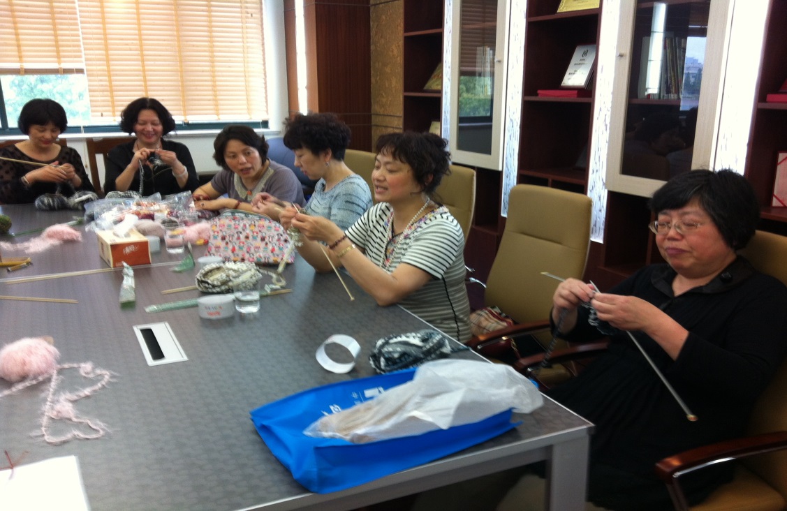 5月15日学院工会邀请上海金陵股份有限公司潘敏副处长来到“妇女小家”,传授绒线编织技术,学校女教工积极参加,既学到了编织的技术,又美丽地打扮了自己,使生活更加充实、多彩。