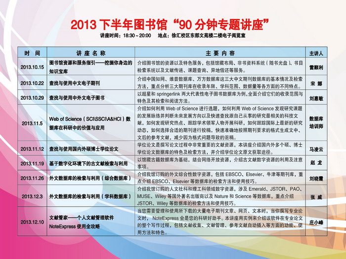 校图书馆“90分钟专题讲座”将于10月15日(周二)开始,欢迎同学报名!