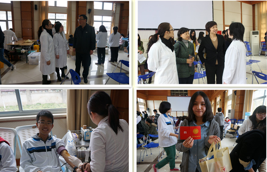 2014年3月27日上午,教育学院爱心献血活动在奉贤校区大学生活动中心101开展。学院党委书记周银娥老师,党委副书记、副院长谢青老师,学院办公室副主任张裕萍老师也来到现场关心慰问献血同学,另外辅导员李莎莎、张亚萍、金黎琼、许凯凯也始终陪伴在同学们身边。