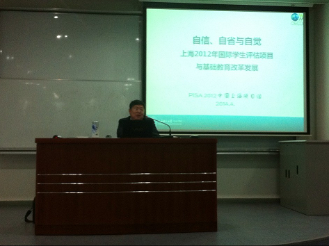 5月8日晚上,我院在四教201教室举行了第九场“学术前沿”专题讲座。上海师范大学校长、博士生导师张民选教授为2013级近200名硕士、博士研究生做了题为“自信、自省与自觉——上海2012年国际学生评估项目与基础教育改革发展”的学术报告。