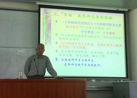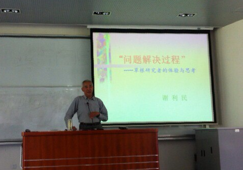 5月22日下午,我院在四教201教室举行了第十一场“学术前沿”专题讲座。博士生导师谢利民教授为2013级近200名硕士、博士研究生做了题为“‘问题解决过程’——草根研究者的体验与思考”的学术报告。