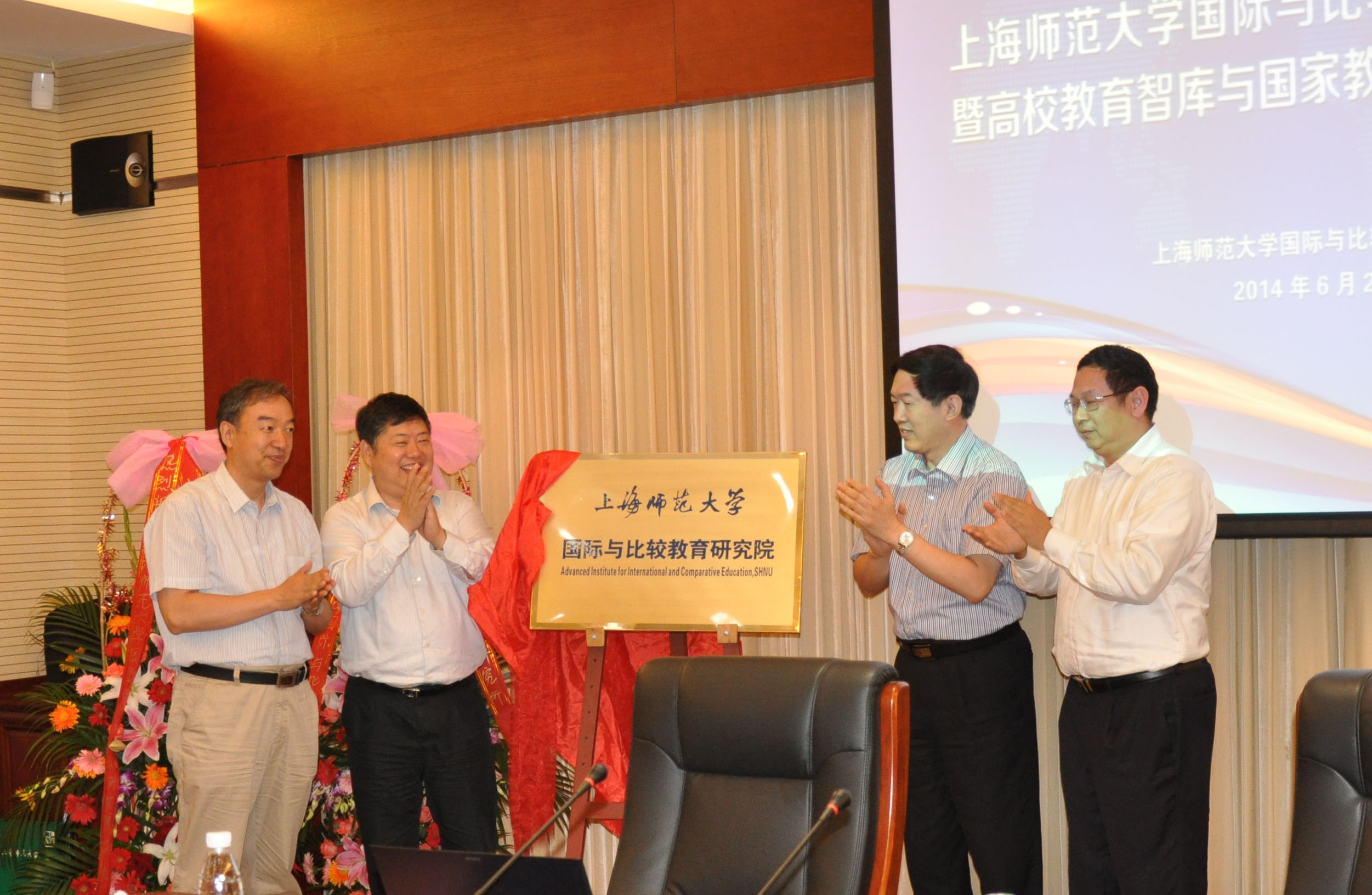 徐辉副主席、张民选校长、杨晓春处长、刘宝存院长为新成立的研究院揭牌。副校长刘晓敏宣布研究院理事会人员名单。浙江大学教育学院、北京师范大学教育学部、华东师范大学教育高等研究院等兄弟学院赠送花篮,并发来贺电表示祝贺,杭州师范大学教育学院赠送画作祝研究院在学术研究、人才培养及决策咨询和社会服务等方面再铸辉煌,为我国教育事业的发展做出更大贡献。