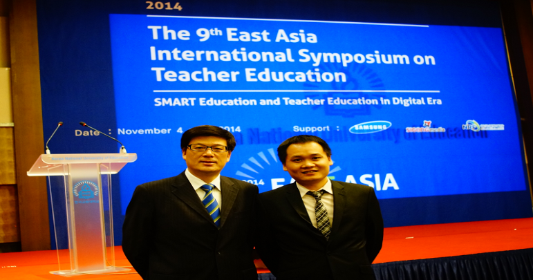 2014年11月3日—6日,我院夏惠贤院长、孔令帅副教授参加了于韩国清州市韩国教员大学举行的“第九届东亚教师教育国际论坛”。本届论坛的主题是“数字化时代的智能教育和教师教育”,来自中国、日本、韩国、新加坡、马来西亚、蒙古等师范院校的200余位学者参加了该论坛。韩国教员大学校长Joo Sung KIM教授在开幕式上致辞。