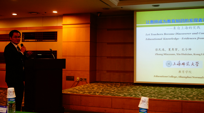 本届论坛包括大会主题报告、“教育环境中的新范式”和“教师教育”两个会会场、青年学者论坛、国际合作项目、论文张贴等,夏惠贤院长、孔令帅副教授在“教师教育”分会场用英文做了“让教师成为教育知识的发现者和构建者——来自上海的实践”(Let Teachers Become Discoverer and Constructor of Educational Knowledge—Evidences from Shanghai)的报告,分析了在新形势下创新教师培训形式,让教师成为教育知识的发现者和建构者的意义,梳理了相关的理论基础,提出了相应的基本观点,并以上海市实验学校和长宁区初中教师高端研修班为例,介绍上海在教师培训方面的创新。报告中的一些观点,特别是长宁区初中教师高端研修班中的“九个双”特点、“九大模块”课程、“九条途径”形式等引起了与会者的极大兴趣。