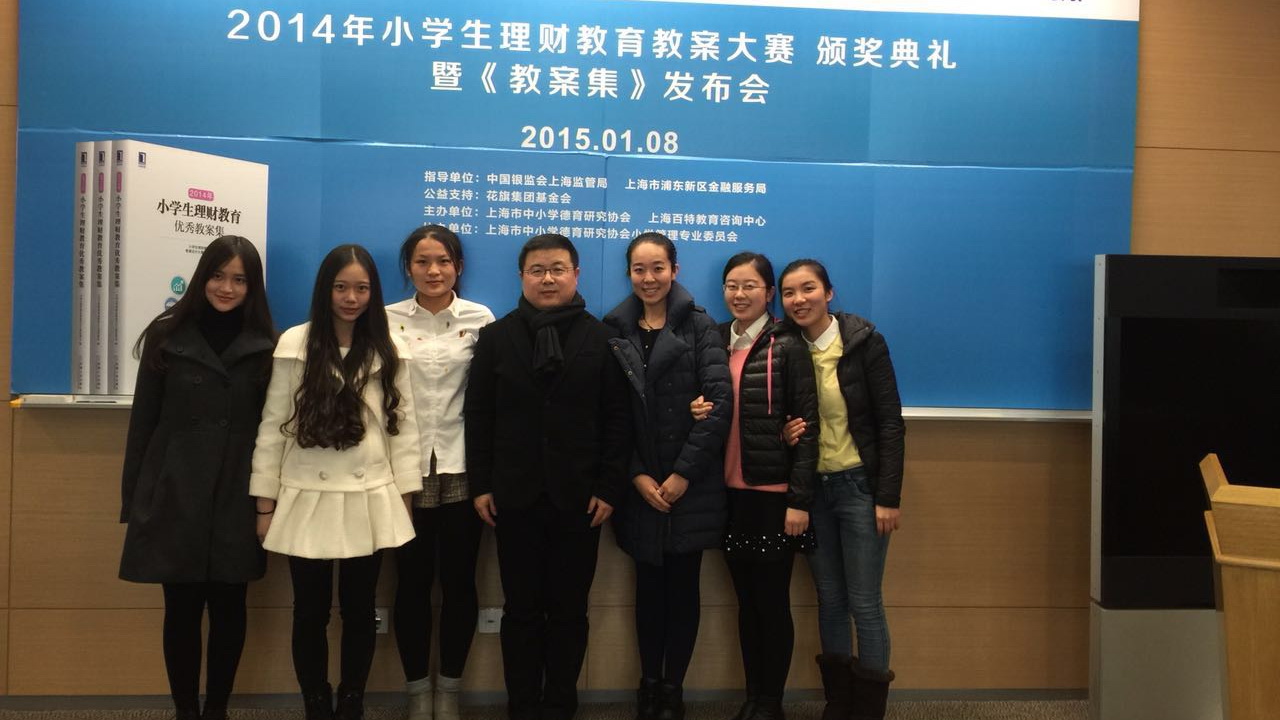 1月8日,国内首本由小学一线教师参与编写的小学生理财教育教案集——《2014年小学生理财教育优秀教案集》在上海环球金融中心正式发布,汇集了39篇理财教育优秀教案。作为本书副主编与教案大赛评委的教育学院管理系的陈勇老师应邀出席并主持本次新书发布会。管理系研究生及本科生前往观摩学习。