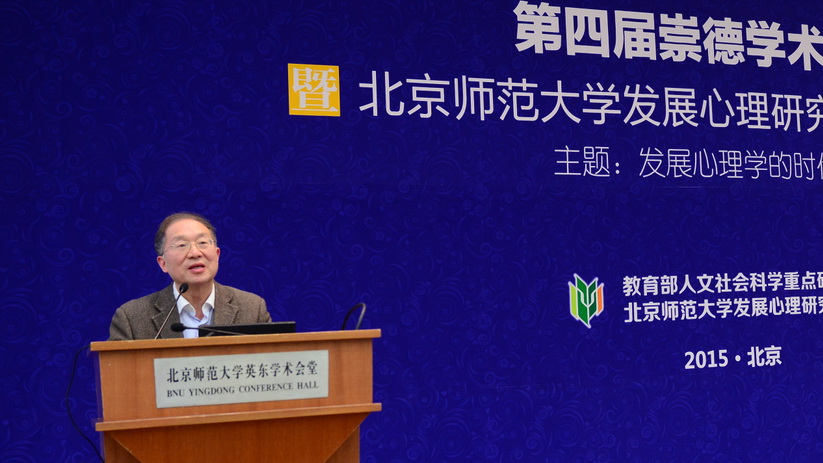 2015年4月18日,由教育部人文社会科学重点研究基地北京师范大学发展心理研究所主办的“第四届崇德学术论坛暨北京师范大学发展心理研究所成立30周年大会”在北京师范大学英东学术会堂隆重举行。北京师范大学校长董奇、中国教育学会会长钟秉林、中国心理学会理事长沈模卫、北京师范大学资深教授林崇德等专家以及来自全国50余所高校的200余名师生参加了本次盛会。我院心理系卢家楣教授、罗俊龙副教授出席了此次论坛及纪念大会。在上午的论坛中,卢家楣教授应邀作了“以社会需要为导向的创新是学科不竭动力——情感教学心理学探索历程概略”的主题报告,报告中卢家楣教授以情感教学心理学30年来的探索经验诠释了以社会需要为导向的创新是学科源源不断发展的动力,其精彩生动的报告受到与会专家的高度评价。