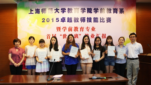 在中国教育学会学前教育专业委员会的支持下,日前,学校教务处和教育学院共同主办了“上海师范大学教育学院学前教育卓越教师技能大赛暨学前教育专业首届‘世承班’毕业汇报”。