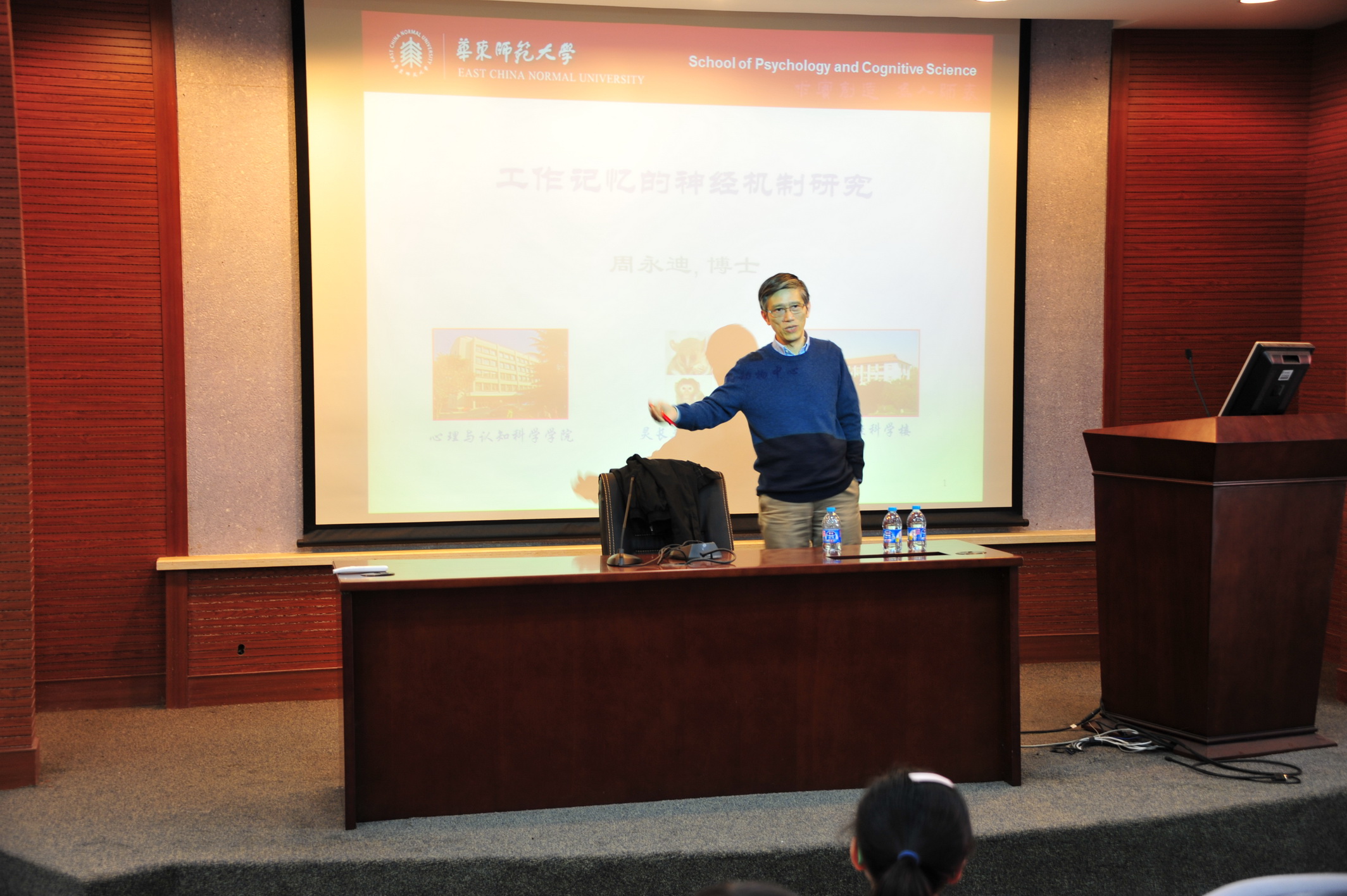 11月14日下午,在四教B座101报告厅,华东师范大学紫江特聘教授、心理与认知科学学院周永迪院长为我院本科生、硕博研究生开展题为《工作记忆神经机制研究》的讲座。出席此次讲座的还有心理系部分青年教师和音乐学院的蒋存梅教授,讲座由心理系主任李丹教授主持。