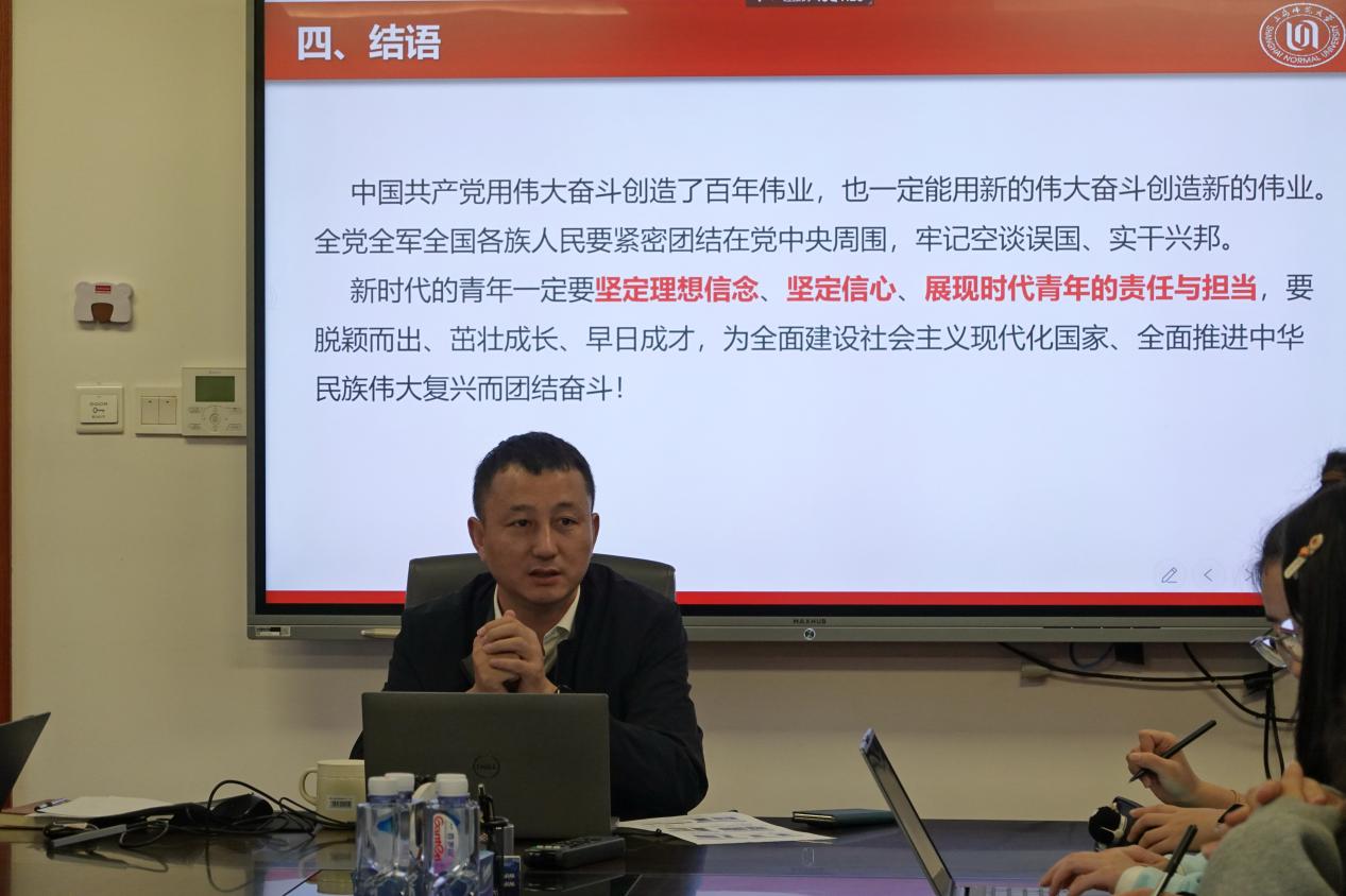 11月3日下午,在54号楼201会议室,教育学院党委副书记(主持工作)吴跃东以“新时代青年的责任与担当”为题,为学院研究生骨干讲授专题党课。党课紧扣时代脉搏,结合国家发展成就与青年成长实际,引导学院研究生在新时代征程中明确使命、勇毅前行。讲座由教育学院学生工作负责人潘梦琳主持。